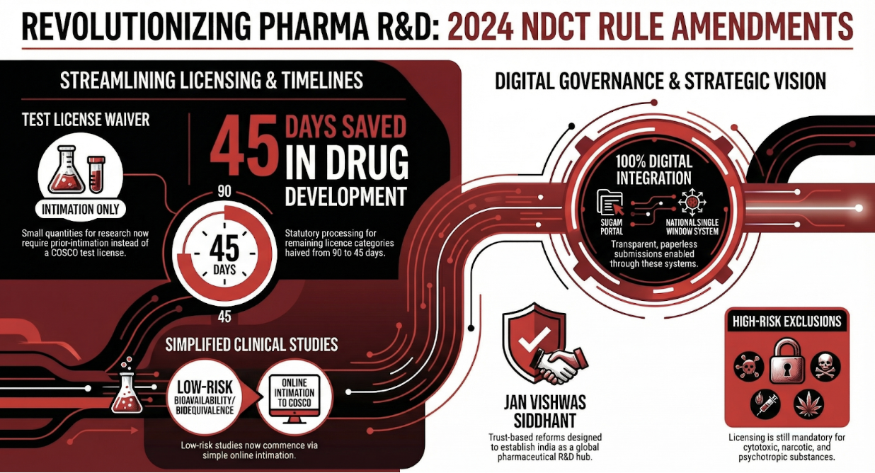 The 2024 amendments to the New Drugs and Clinical Trials Rules represent a strategic shift toward a more agile pharmaceutical regulatory framework. By halving processing times and removing licensing requirements for low-risk research activities, the Union Ministry of Health and Family Welfare is actively reducing the time-to-market for new therapies while maintaining necessary safeguards for high-risk substances. This regulatory evolution is a critical step in achieving the national objective of becoming a global leader in pharmaceutical R&D.