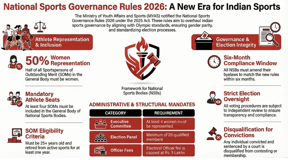 On January 12, 2026, the Ministry of Youth Affairs and Sports (MYAS) notified the National Sports Governance (National Sports Bodies, NSBs) Rules, 2026. Issued under the authority of the National Sports Governance Act, 2025, these rules establish a mandatory legal framework for NSBs and Regional Sports Federations.